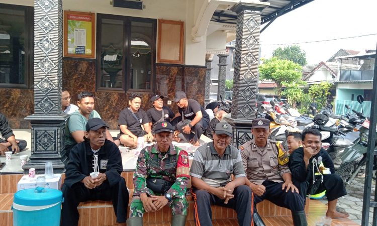 Bhabinkamtibmas dan Babinsa melaksanakan kegiatan Kerja Bakti dengan warga dan dari Perguruan PSHT ranting Mojoroto di Sekitar Masjid Al- Humayan Perumahan Wilis Indah 1 Lingkungan RT 22 RW 05 Campurejo, Kota Kediri.