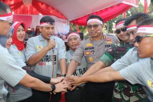 Walikota Kediri Abdullah Abu Bakar dan jajaran Forpimda diantaranya Kapolresta Kediri AKBP Anthon Haryadi, S.IK, M.H yang turut bergabung dalam aksi kebangsaan dari gabungan pemuda Kota Kediri ini bersyukur kirab Merah Putih masih ada dan antusias masyarakat begitu besar.