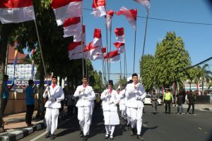 Tribratanews Polresta Kediri – Ratusan pemuda Kota Kediri kembali memenuhi kawasan Jalan Basuki Rahmat Balaikota Kediri . Panggilan cinta kepada Merah Putih dan NKRI (Negara Kesatuan Republik Indonesia) membawa mereka berkumpul untuk bersama melakukan Kirab Merah Putih raksasa dari Balaikota Kediri menuju kawasan Goa Selomangleng Kediri, Kamis (16/8).