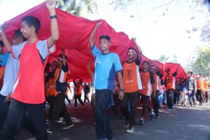 Merah putih raksasa ini akan dibentangkan esok dini hari di puncak Klothok. Para peserta juga akan melakukan upacara bendera memperingati hari kemerdekaan Negara Kesatuan Republik Indonesia (NKRI) di puncak Klotok pada tanggal 17 Agustus 2018. (res|aro)